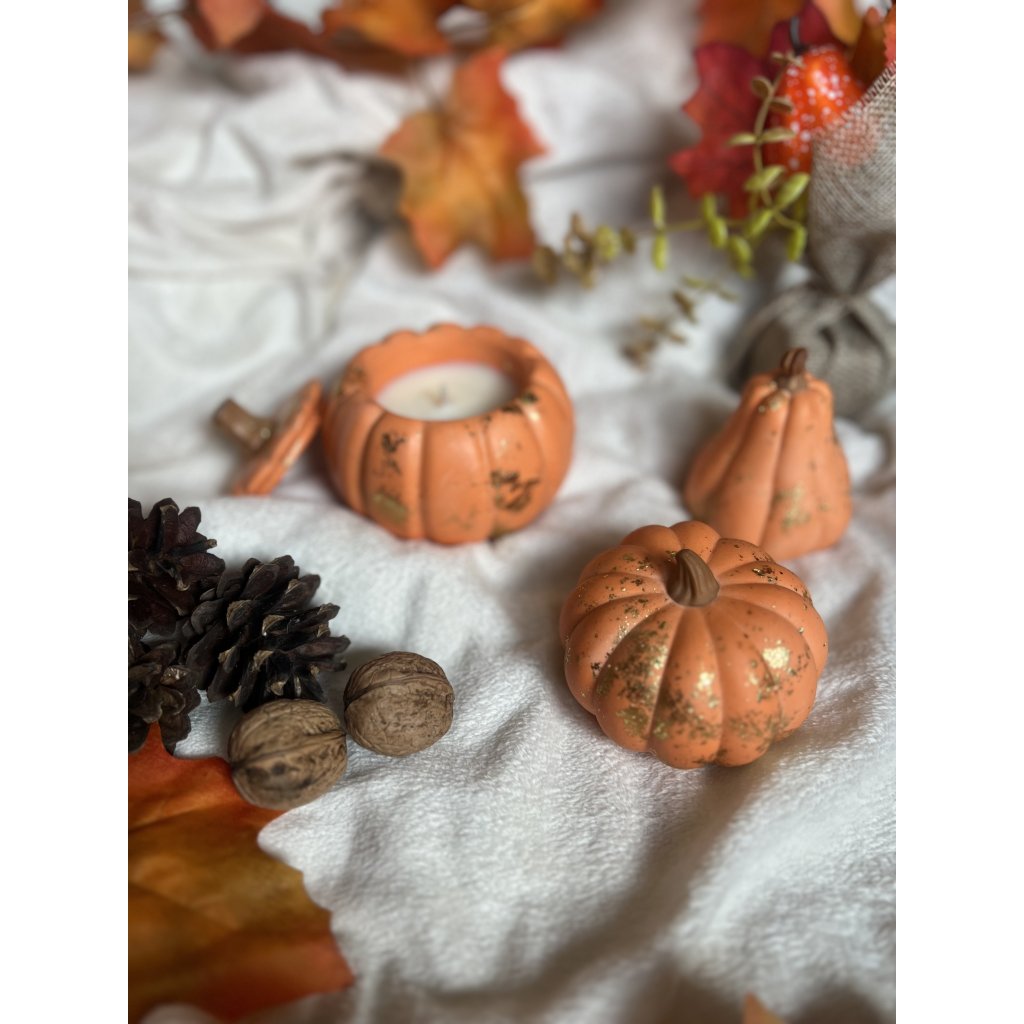 Dýničku můžete hravě kombinovat třeba se svíčkou ve tvaru dýně, nebo si udělat krásný set s podzimním listem, na který můžete navíc odkládat i drobnosti.