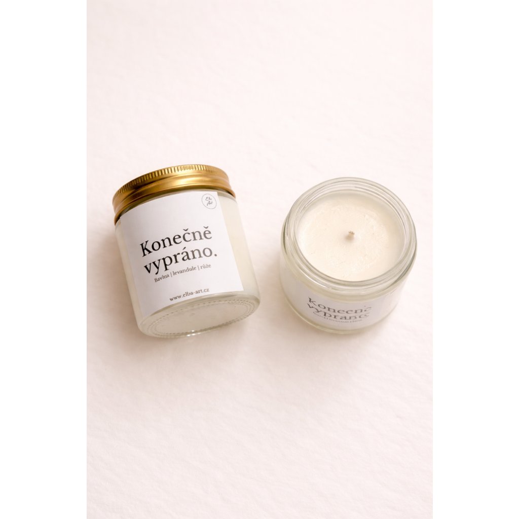 Pokud i Vy chcete občas vyskočit z nekonečného kolotoče praní, ale nechcete se o tuto vůni ochudit, je svíčka Konečně vypráno přesně pro Vás!