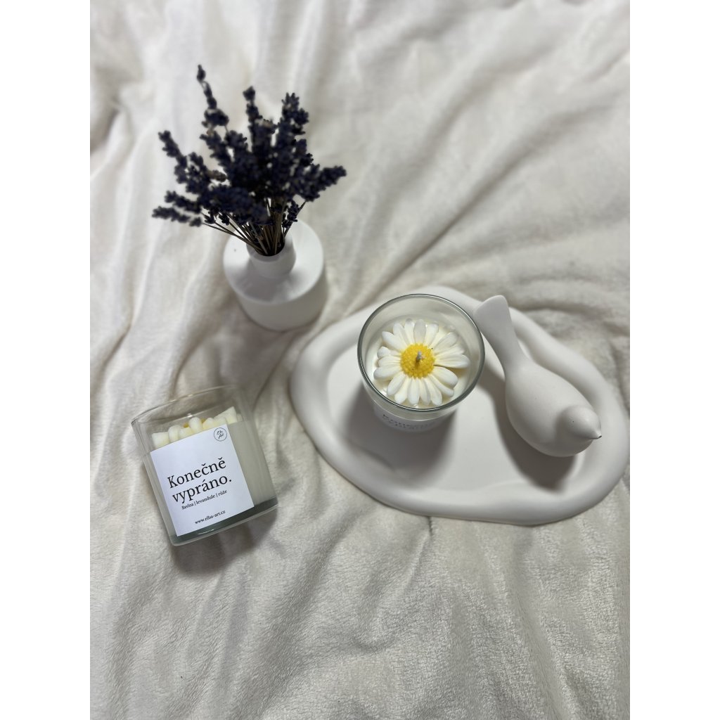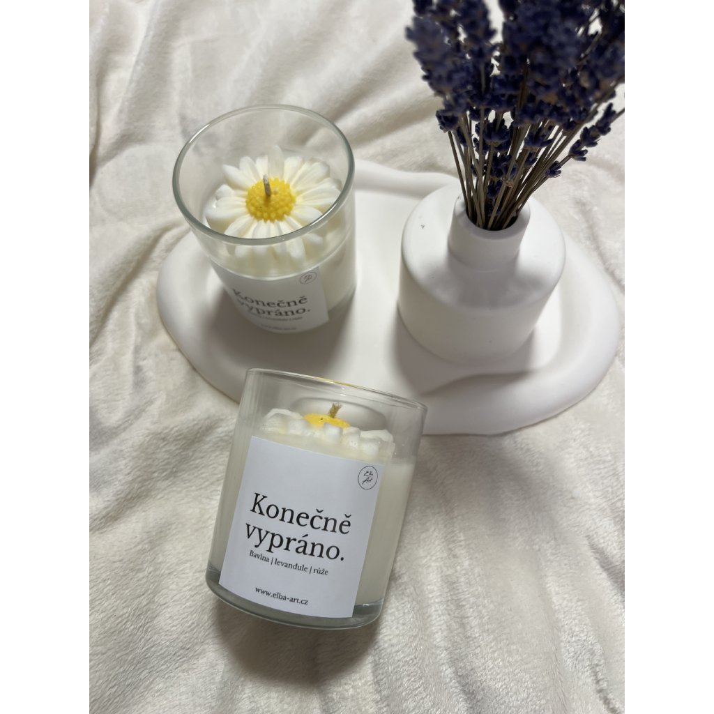 Pokud i Vy chcete občas vyskočit z nekonečného kolotoče praní, ale nechcete se o tuto vůni ochudit, je svíčka Konečně vypráno přesně pro Vás!